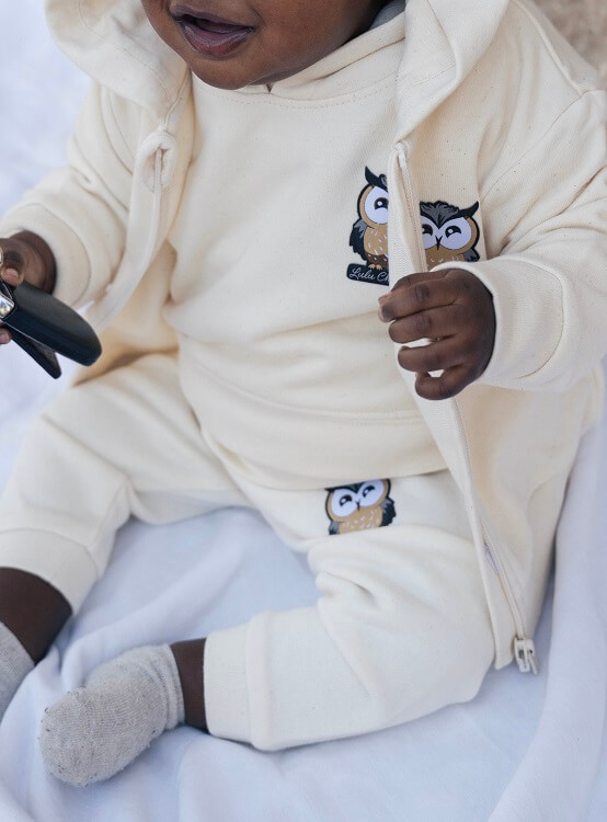 Composition : Molleton non brossé , 85% coton biologique filé et peigné , 15% polyester recyclé , Tissu lavé , Toucher doux , 280 GSM